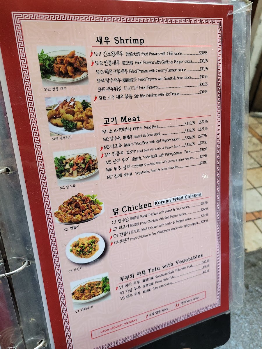 The menu also features versatile options like orange chicken, fried dumplings, and mixed seafood with vegetables, suitable for those who enjoy balanced, shareable plates. Meat lovers will find variety in small and large servings of fried beef dishes, often prepared with a choice of sauces that range from sweet and sour to spicy garlic. Special set menus, including traditional Korean draft beer or cham soju, offer a way to round out your meal with thoughtful pairing choices.